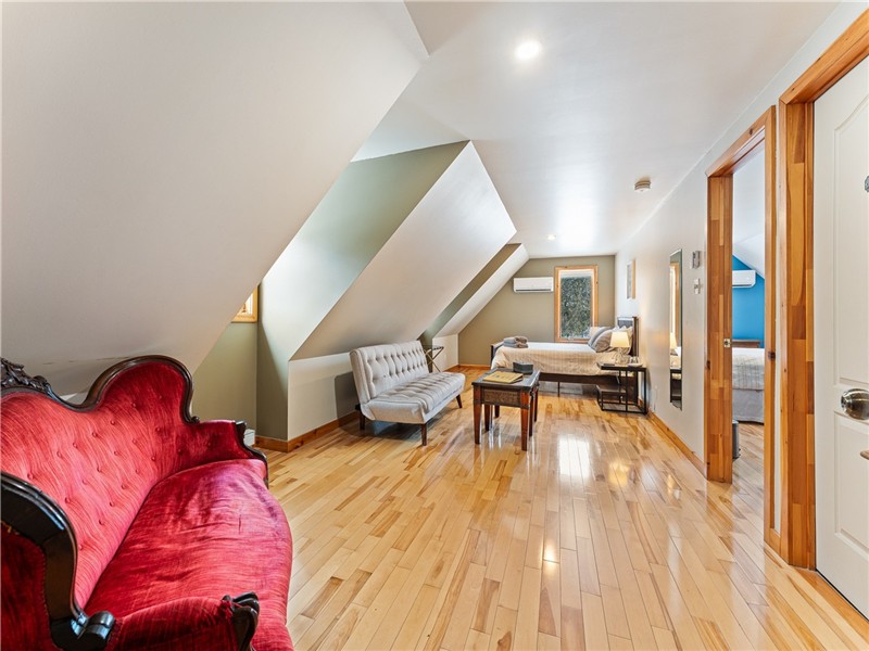 Ideally located near Mont Orford, offering quick access to the ski slopes and golf course, this inn enjoys a sought-after location just minutes from Magog and approximately one hour from Montreal. This charming ancestral home features a warm character with wood-paneled interiors, creating an authentic and inviting atmosphere. It offers spacious indoor areas, perfect for hosting guests, as well as relaxation amenities including a spa, sauna, and heated in-ground pool. The property includes 5 bedrooms, including one double room, each with its own private bathroom, ensuring comfort and privacy. |